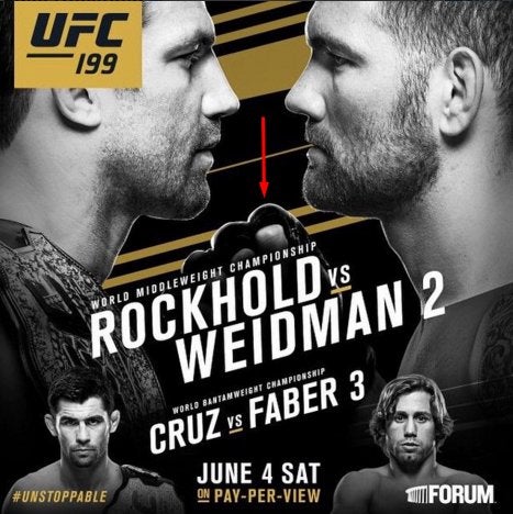 Luke Rockhold reclamou do poster de sua luta contra Chris Weidman porque a mão deste adversário encontra-se entre os dois, e pediu via rede social até que ela fosse retirada num futuro próximo.