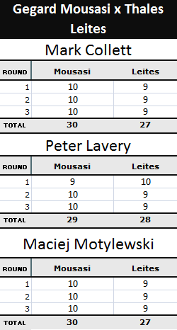 Veja a pontuação desses árbitros do UFC - Anderson Silva x Michael Bisping nas imagens abaixo e dos 13 duelos marcados 10 acabaram decididas pelos juízes laterais, onde apenas duas foram "divididas" e um majoritário.