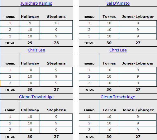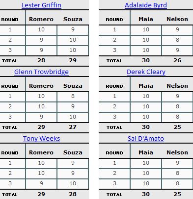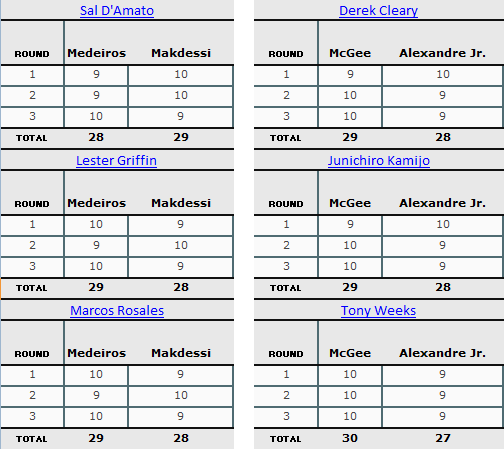 O resultado mais polêmico foi a conquista de Yoel Romero sobre Ronaldo Jacaré, neste enfrentamento apenas o juíz Lester Griffin deu a vitória para o brasileiro, enquanto outros decretaram triunfo desse cubano.