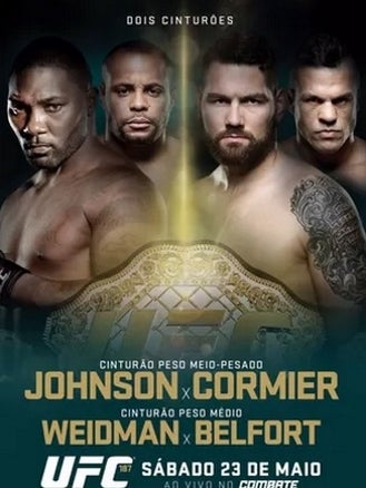 23 de Maio de 2015 RESUMOO pôster do UFC 187 destaca os principais confrontos da noite e que valerão o cinturão de duas divisões do Ultimate, um pelo título dos meio pesados entre Anthony Johnson e Daniel Cormier e outro entre Chris Weidman e Vitor Belfort lutando para determinar o campeão dos médios.