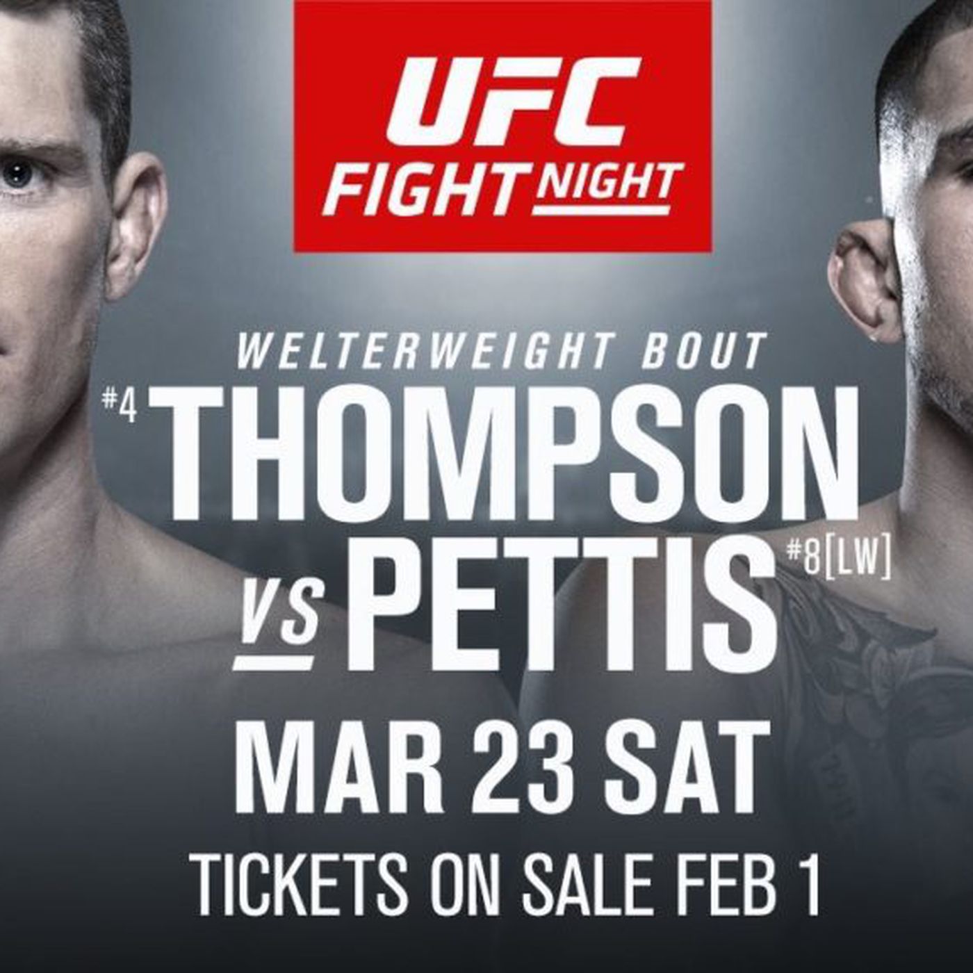 23 de Março de 2019 RESUMOO poster oficial do UFC Nashville traz como destaque as três últimas lutas do card principal, são elas: Stephen Thompson x Anthony Pettis, Curtis Blaydes x Justin Willis, John Makdessi x Jesus Pinedo, Jussier Formiga x Deiveson Figueiredo, Luis Pena x Steven Peterson e por fim Maycee Barber x JJ Aldrich.